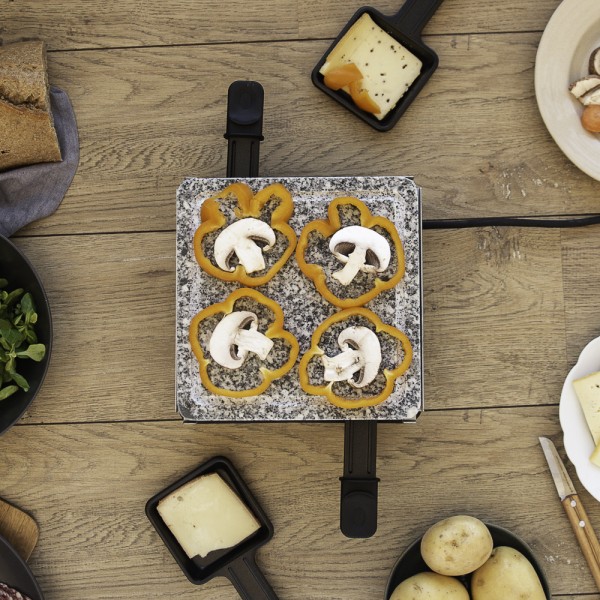 Der Raclette-Grill verfügt über eine praktische Grillplatte, die für zahlreiche Zubereitungsmöglichkeiten genutzt werden kann. Sie können damit Ihre Raclette-Pfännchen vorwärmen, Gemüse braten oder sogar Fleisch, Fisch und Spiegeleier grillen. Dieser Raclette-Grill ermöglicht es Ihnen, den traditionellen Raclettegenuss mit leckeren Grillspezialitäten zu kombinieren und den Abend zu einem unvergesslichen Erlebnis zu machen.