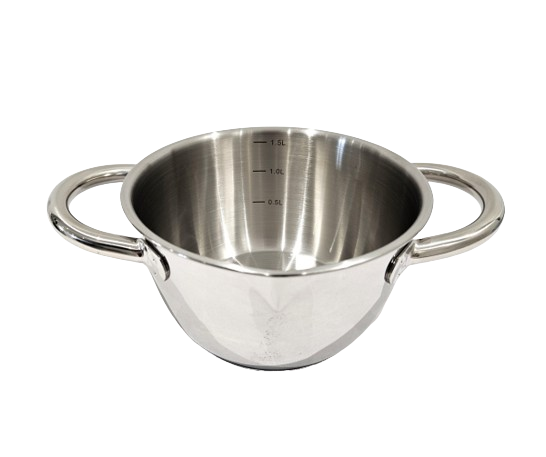 Das Chromstahlpfännchen von Stronghold zeichnet sich durch seine ausgeklügelte Konstruktion mit zwei praktischen Griffen, einem präzisen Ausguss und innenseitigen Literangaben aus. Hergestellt aus hochwertigem Chromstahl, kombiniert es Robustheit mit stilvollem Design.