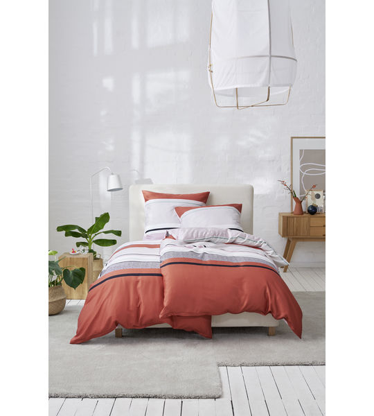 Im modernen Streifen-Design begeistert die Bettwäsche Quin von ESPRIT. So gestalten viele mehrfarbige Block-Querstreifen in grafischen Strukturelementen und Farben die ansprechende Optik der Garnitur.